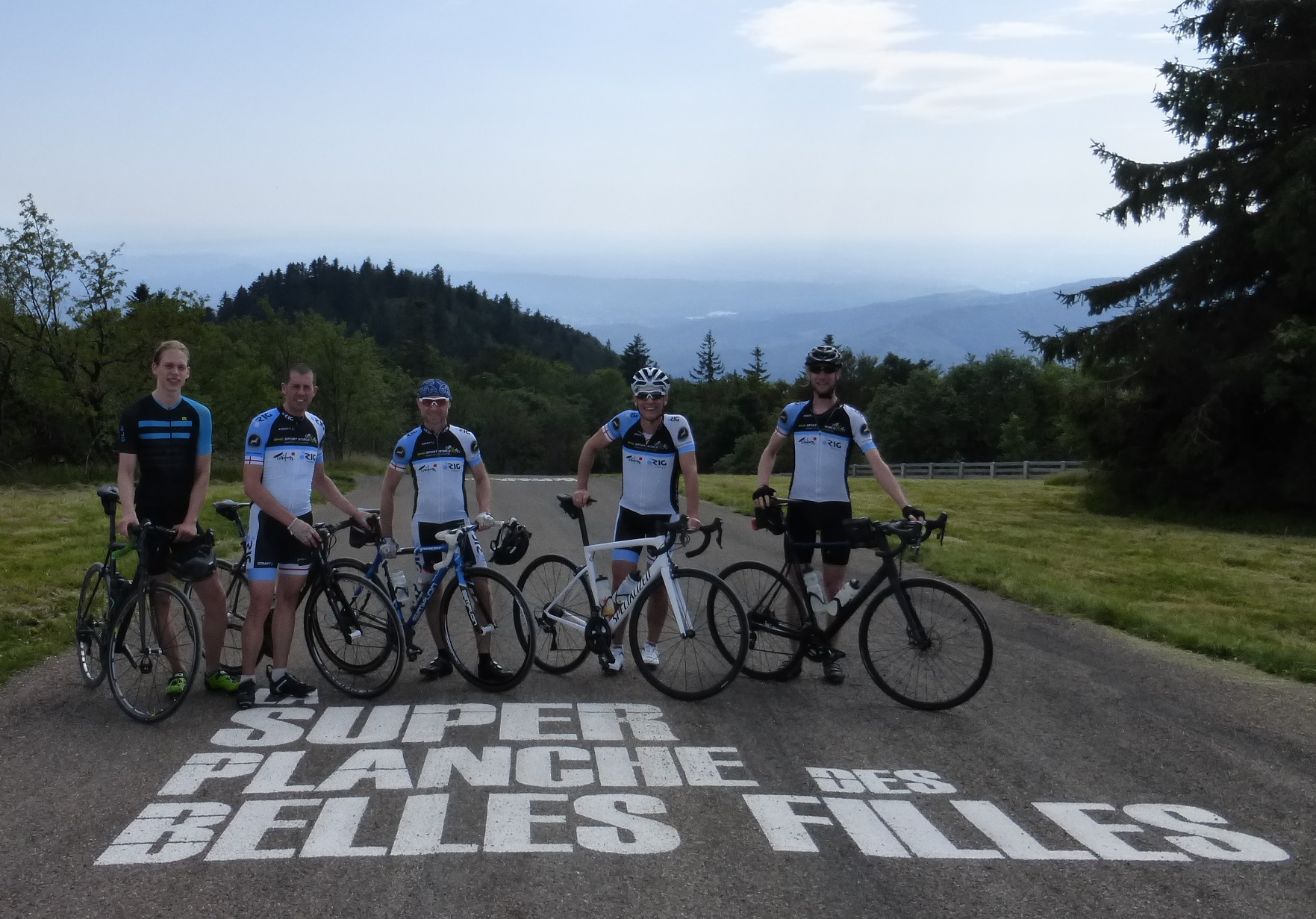 Am Wochenende vor der diesjährigen 6. Tour-Etappe machte sich eine 5köpfige RIG-Delegation auf den Weg ins Nachbarland, um die komplette, sehr bergige Etappe (plus Rückweg) unter die Räder zu nehmen. Nach einer kurzen Einrollphase ab Cernay ging es auch schon in den ersten der 6 Anstiege hoch zum "Le Markstein/Grand Ballon" - begleitet von ein paar wenigen morgendlichen Regentropfen. Was aber nicht weiter schlimm war, wie überhaupt die Wolken, die immer wieder die Sonne verdeckten und so eine zu große Hitze verhinderten. Es folgten "Col du Hundsrück", "Ballon d'Alsace", "Col des Croix", "Col des Chevrères" und zum Schluss der Anstieg hoch zum "La Planche des Belles Filles" mit seinen finalen Mörderrampen über die Skipiste.