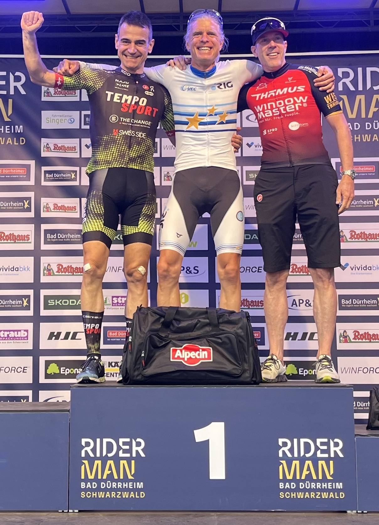 Marc konnte sich am Wochenende beim 3-Etappenrennen Riderman in Bad Dürrheim souverän den Gesamtsieg in seiner Altersklasse sichern. Beim Zeitfahren über 15.8 km am Freitag gewann Marc mit 25 Sekunden Vorsprung vor seinen stärksten Rivalen. Auf der zweiten welligen Etappe über 120 km mit einem 1 km-Anstieg mit bis zu 20% Steigung, welcher zweimal bewältigt werden musste, sicherte er sich den Tageserfolg im Sprint im Fotofinish. Bei der dritten Hochgeschwindigkeits-Etappe über 90km genügte Marc ein 2. Platz, um in der Gesamtwertung mit einem Vorsprung von ca. 1 Minute wieder ganz oben auf dem Podest zu stehen.
