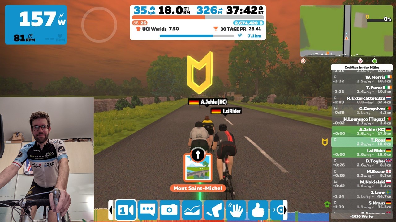 Seit Anfang Dezember fahren wir in unregelmäßigen Abständen (aber meistens 1x die Woche) auch virtuell Rad - aus der eigenen Wohnung. Durch die weiten Landschaften von Yorkshire, durch Dschungel oder Wüsten und zum Mont Ventoux sind alle Landschaften vertreten und es sollte für jeden etwas dabei sein. Über ein zusätzliches Tool ist es zudem möglich, während des Trainings zu unterhalten.